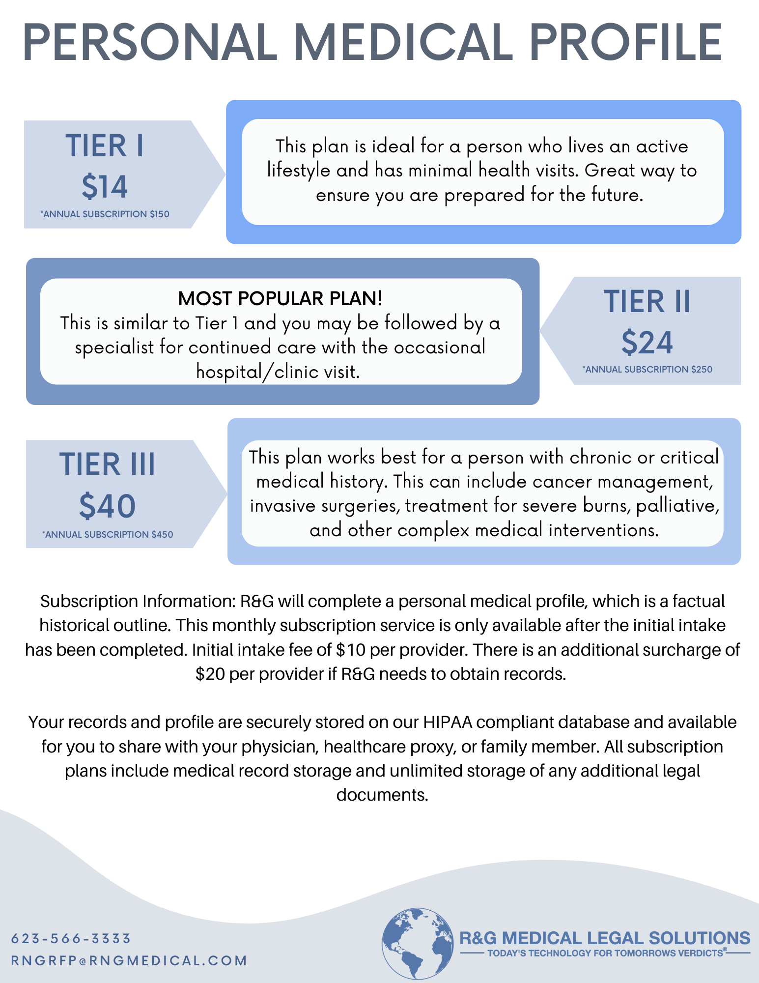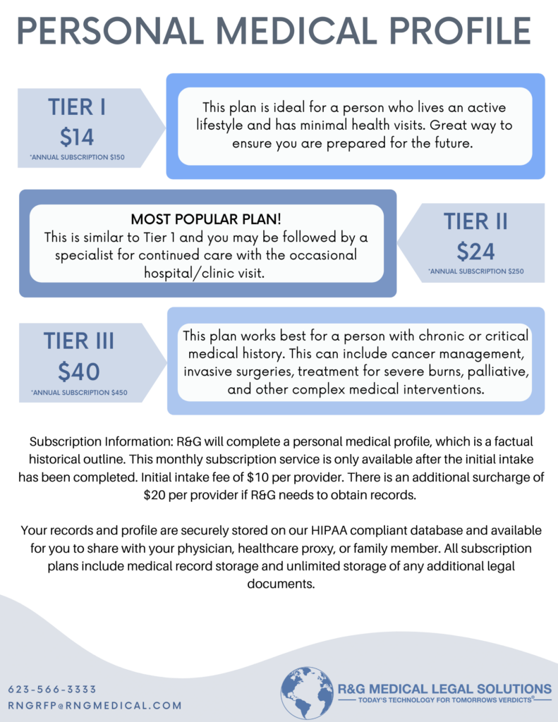 If you answered “yes” to any of these questions, R&G can help! R&G has recently launched a new service called “Personal Medical Profile”.